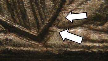 Lint marks are fairly common with proofs and special strikes, but not so with circulation strikes. The presence of a lint mark supports a coin’s proof or specimen status, but is not conclusive evidence.