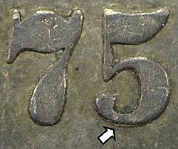 The die has a minor recut 5, slightly doubled to the south.
