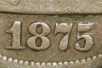 but overall the die marriage represents less than 5% of the surviving 1875-CC coins. Rarity rating: R-4.