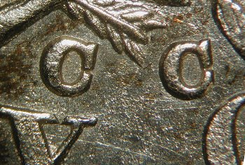 Mintmark has first C low and away from arrow, and tilted to the right. The second C is also low, centered between the arrow and the leaf, and tilted slightly to the left.