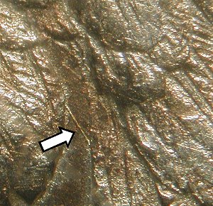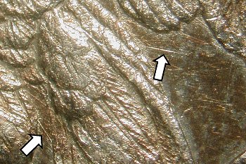 There are two die markers on the reverse, located by the arrows below. See the two additional detailed close-up photos below.