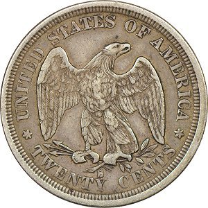 This reverse die features a partially-filled mintmark that is somewhat low and to the left. The lower left serif seems to hang slightly below the rest of the mintmark.