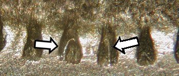 The misplaced digit looks more like a thin wire in the denticles than a digit, and is weak like the surrounding denticles. The top of the misplaced digit is exactly the