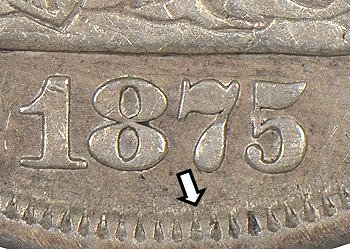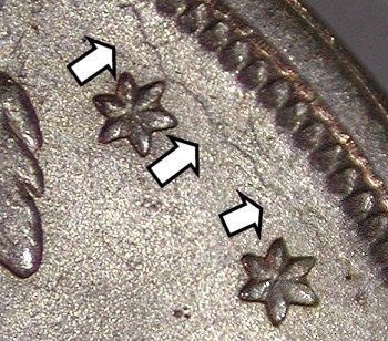 In the latest die state, a die crack develops near stars 9 and 10, to the right of Liberty’s cap. The presence of this die crack allows determination of the