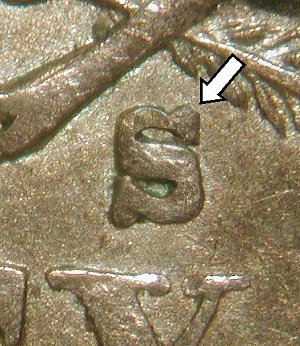This reverse has a minor repunched S/S, centrally placed between the stem and the tail of the arrow. The repunching is only noticeable at the upper-right serif.
