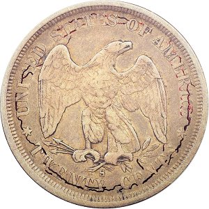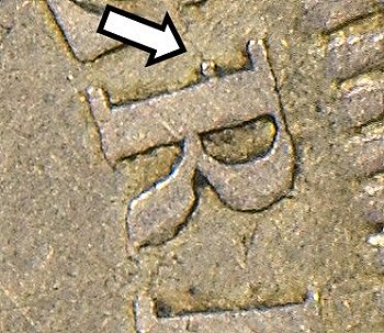 One of the easiest reverses to attribute, this die features an obvious knob on the R in AMERICA.
