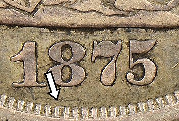 This die has what is believed to be a die chip in the denticles rather than a misplaced date digit.