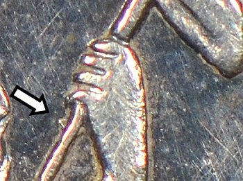 The TS in CENTS is weak and there are two die defects due to excessive die polishing before striking the proof coins. The upper left serif of the T and the lower left serif
