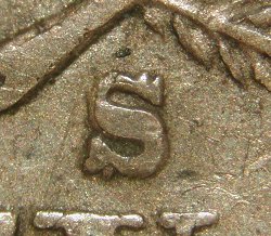 The repunching on this variety is most visible on the serifs of the mintmark.