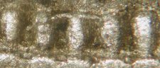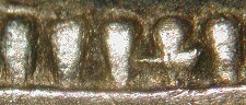 The 1875-S also has at least five different obverse dies with misplaced date (MPD) digits, where the tops of digits can be seen in the denticles below the date.