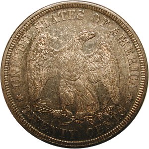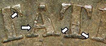 A minor doubled reverse die, most easily seen in the legend at the base of the letters and the crossbar of the A in STATES.