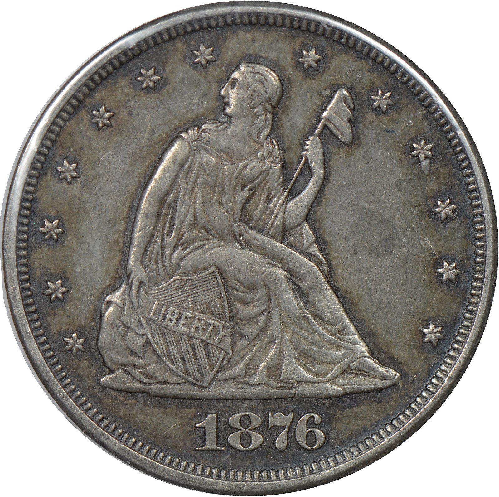 This reverse shows no evidence of die doubling. Most examples do, however, exhibit some level of shelf or strike doubling in the legend and the devices.