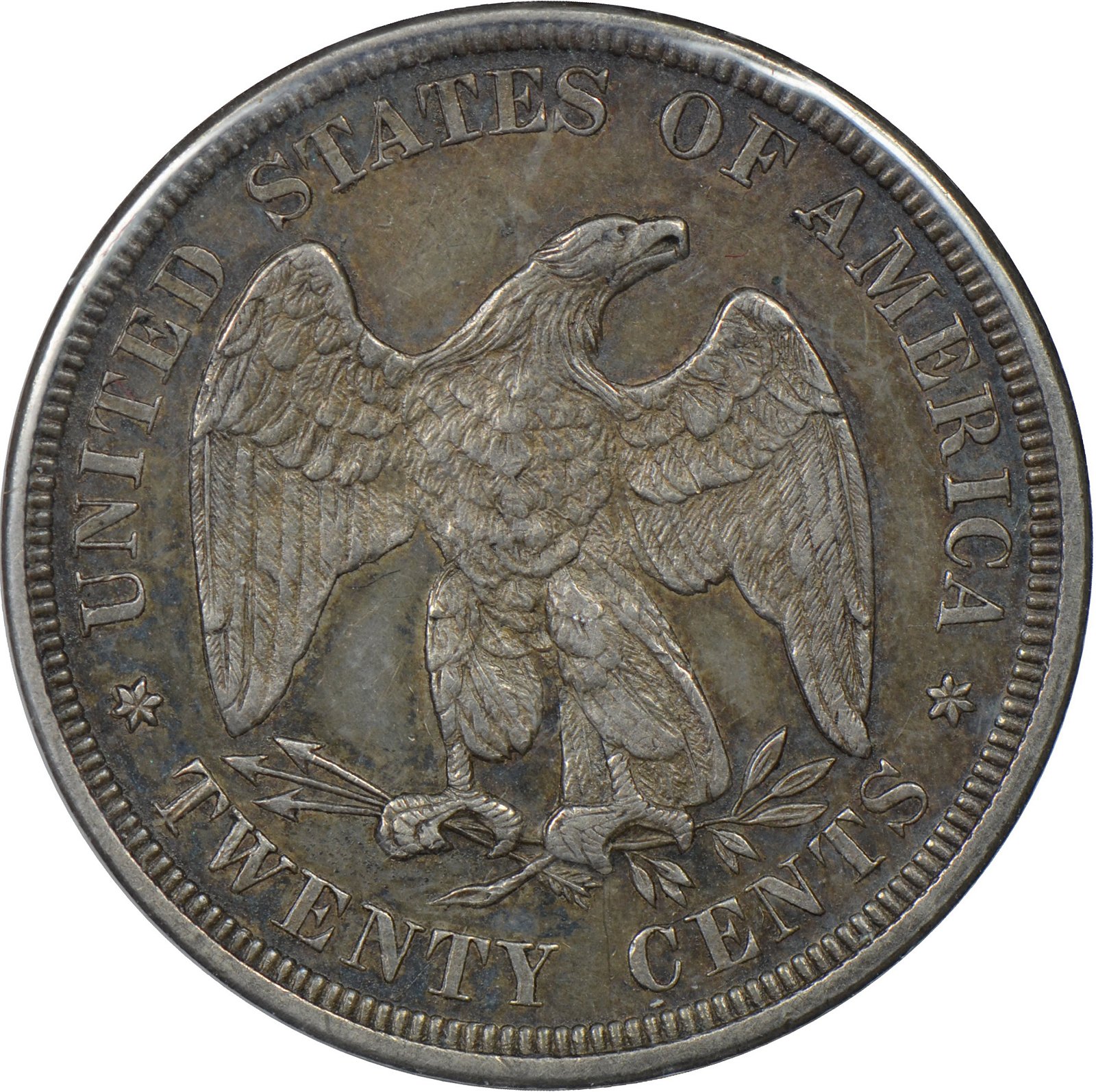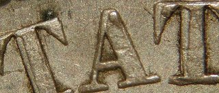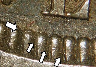 All examples seen so far show a thin but deep die scratch in the denticles below WE in TWENTY.