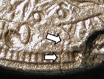 When examining the reverse die more closely, the photograph clearly shows a prominent die crack in the die itself, which is seen directly next to the Y in TWENTY. Sound familiar? In addition, a