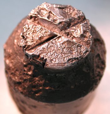 The enlarged photos below of the die and the 1875-CC BF-1 reverse clearly show the match between the die and the coin, remembering the die is the reverse image of the resulting coin (left-to-right).