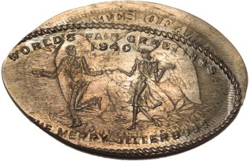 Elongated twenty-cent piece – “World’s Fair Greetings 1940, The Merry Jitterbugs”