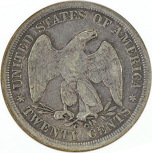 When grading this series, as well as many of the other United States series, emphasis is placed on the obverse of the coin. Interestingly, many twenty-cent pieces have a split grade. That is, the