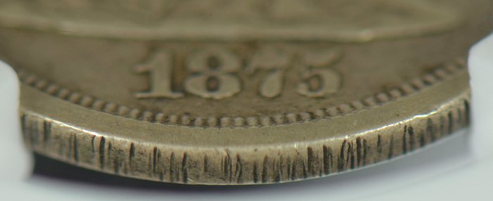 impact on the coin’s value, and should be noted. Some coins had their edge hand-reeded by carving numerous cuts into it, likely to attempt passing them as quarters. There even exists a certified