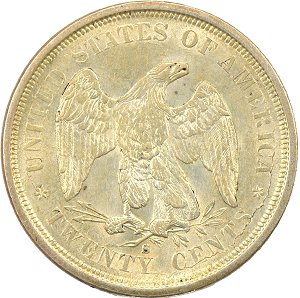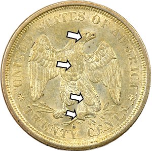 Many twenty-cent pieces that appear to be uncirculated are not mint state, but are coins with a slight amount of wear that have been cleaned to mask traces of that wear. The resulting coin