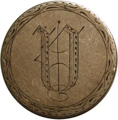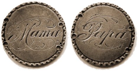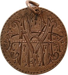 Love tokens with initials are the most commonly encountered examples. Some love tokens are made with a hole to be included in jewelry.