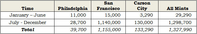 Mint records, the total mintage for the denomination from all mints was a mere 1,355,000 pieces making the mintage for the entire denomination much less than the contemporary mintage of