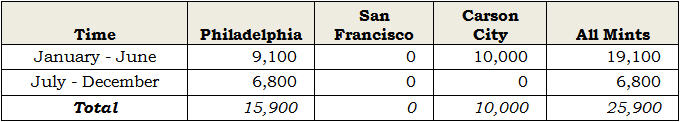 not the locations of original mintage. Carson City is listed in “Other” due to the short timeframe that melting took place at that location. See “Notes” for details.